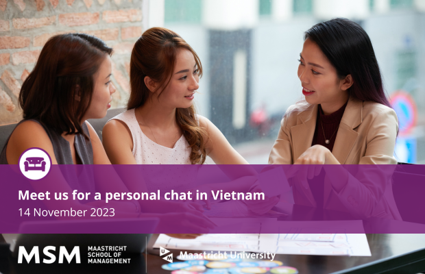 Would you like to know more about our Master in Management, Full-time MBA, Global Flex Online MBA, Executive PhD and Short Executive Programmes? Meet MSM's representative for a personal chat in Ho Chi Minh City, Vietnam on 13 and 14 November.
