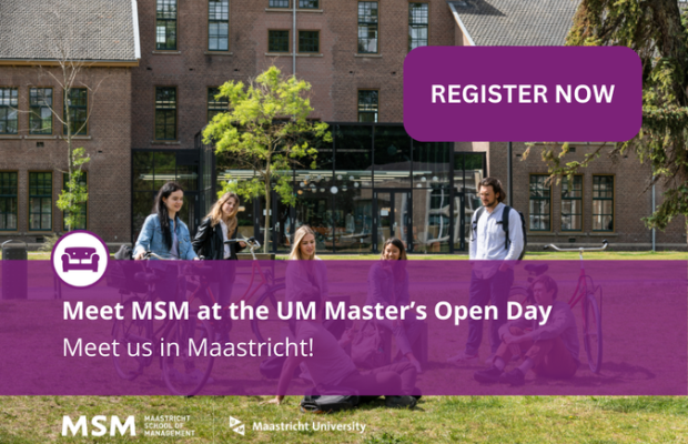 Would you like to know more about our Master in Management, Full-Time MBA and Global Online MBA? Now's your chance! Meet MSM's Manager of Enrolment and Career Services, Hermina Kooyman, at the Spring 2026 Maastricht University Master's Open Day. Maastricht School of Management (MSM-UM) is part of Maastricht University's School of Business and Economics (SBE) and as such you will find us at the SBE information market.