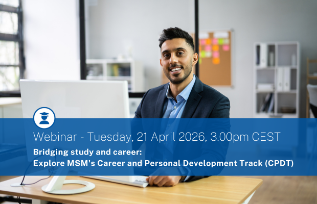In this interactive webinar, discover how MSM goes beyond the classroom to support Master in Management and Full-time MBA students in preparing for real-world career challenges. From navigating a new job market to building confidence in a global environment, the CPDT is designed to help you turn your ambitions into concrete career opportunities.