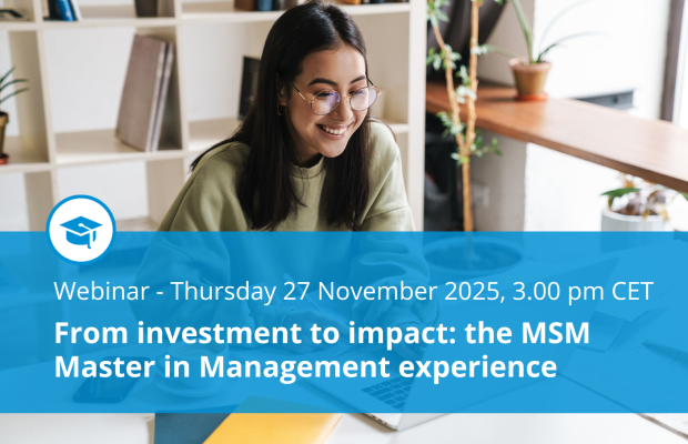 In the webinar we will take a closer look at the full spectrum of returns you can expect, helping you understand how the MSM Master in Management can be a transformative investment in your future. You will also hear from a couple of our MSM Master in Management alumni, and get the opportunity to ask any of your questions.