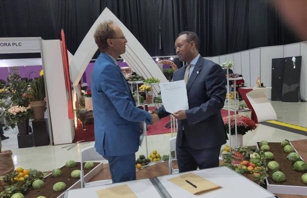 On Tuesday, 24 March, Huub Mudde, MOBILISE Project Director, and Tewodros Zewdie, Executive Director of EHPEA (Ethiopian Horticulture Producers and Exporters Association), officially signed an agreement to shape the in-country internship programme. The signing took place during the HortiFlora Expo, the largest horticultural event of the year in Ethiopia, highlighting the strong alignment between academia and industry.