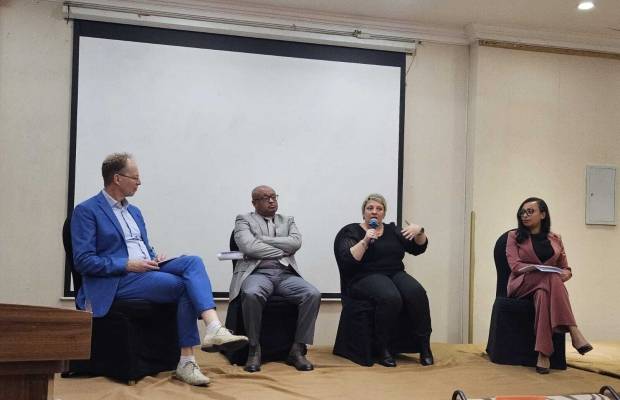 The morning concluded with a panel discussion hosted by Dr. Ir. Huub L.M. Mudde, bringing together perspectives from academia, the private sector, and international partners. Panellists included Dr. Nicoleta Suciu from Università Cattolica del Sacro Cuore, Ms. Mahlet Dessie from the Embassy of the Kingdom of the Netherlands, and Mr. Solomon Kebede representative of the European Union Delegation to Ethiopia. The discussion stressed the importance of aligning research with policy and industry needs, involving the private sector and communities from the start, integrating internships and practical learning into curricula, and ensuring strong monitoring and quality assurance.